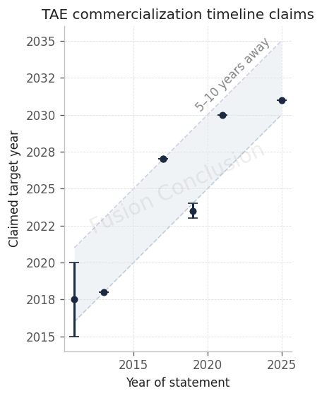 For this article, I’ll start with the story of how "alternative" fusion ideas like TAE’s survived when government funding narrowed to a few mainstream paths. Then I’ll lay out TAE’s argument for its field reversed configuration (FRC) approach and “clean” p+B11 fuel. Finally, I’ll show why many fusion experts remain skeptical by using published data to demonstrate the scale of the performance gap and what would have to be true for “first power in 2031” to happen. My goal is to give a clear and sober picture of where TAE is and what they need to do to get to where they say they are going.